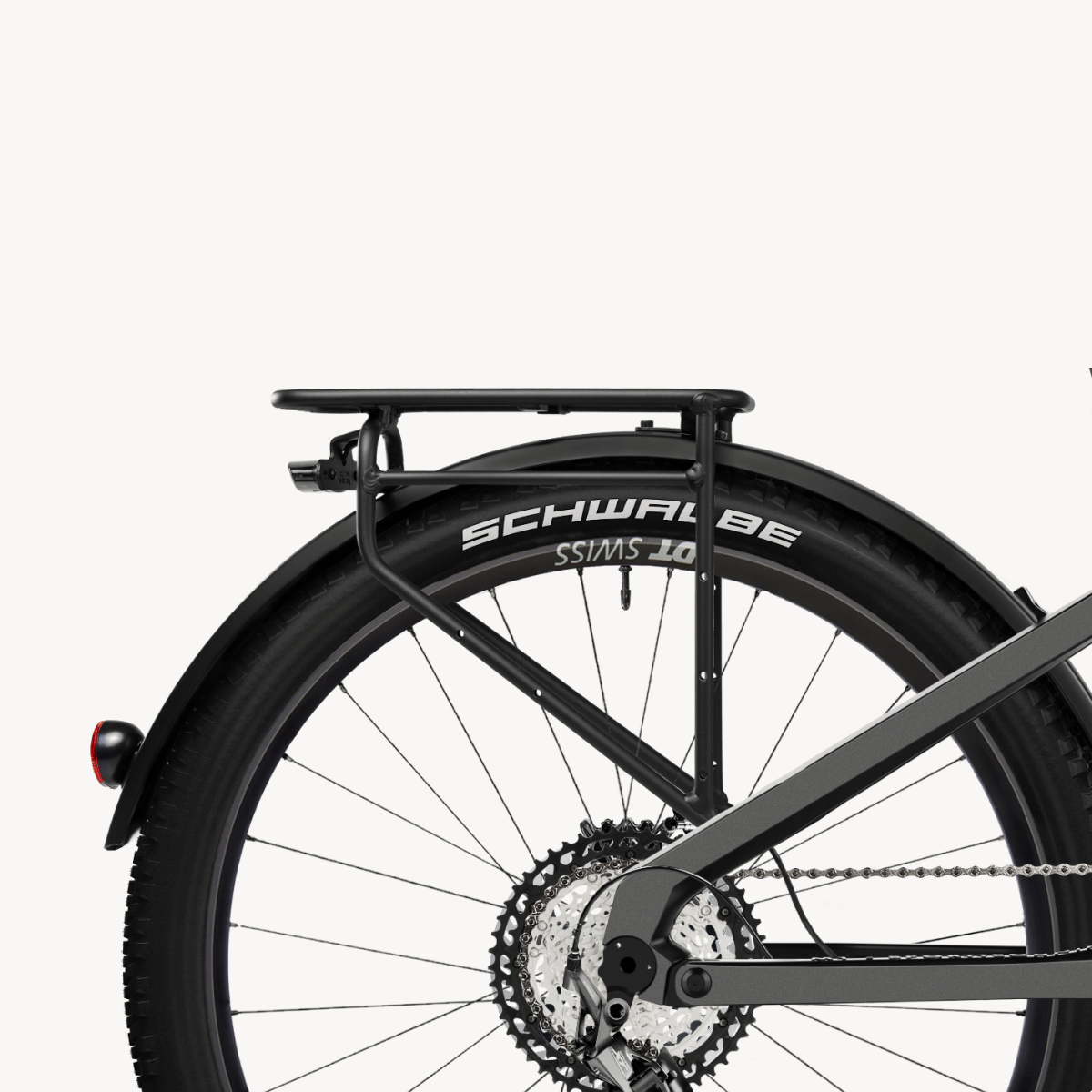 Diskrete Montagepunkte machen aus dem Trail-Bike im Handumdrehen einen tourentauglichen Begleiter