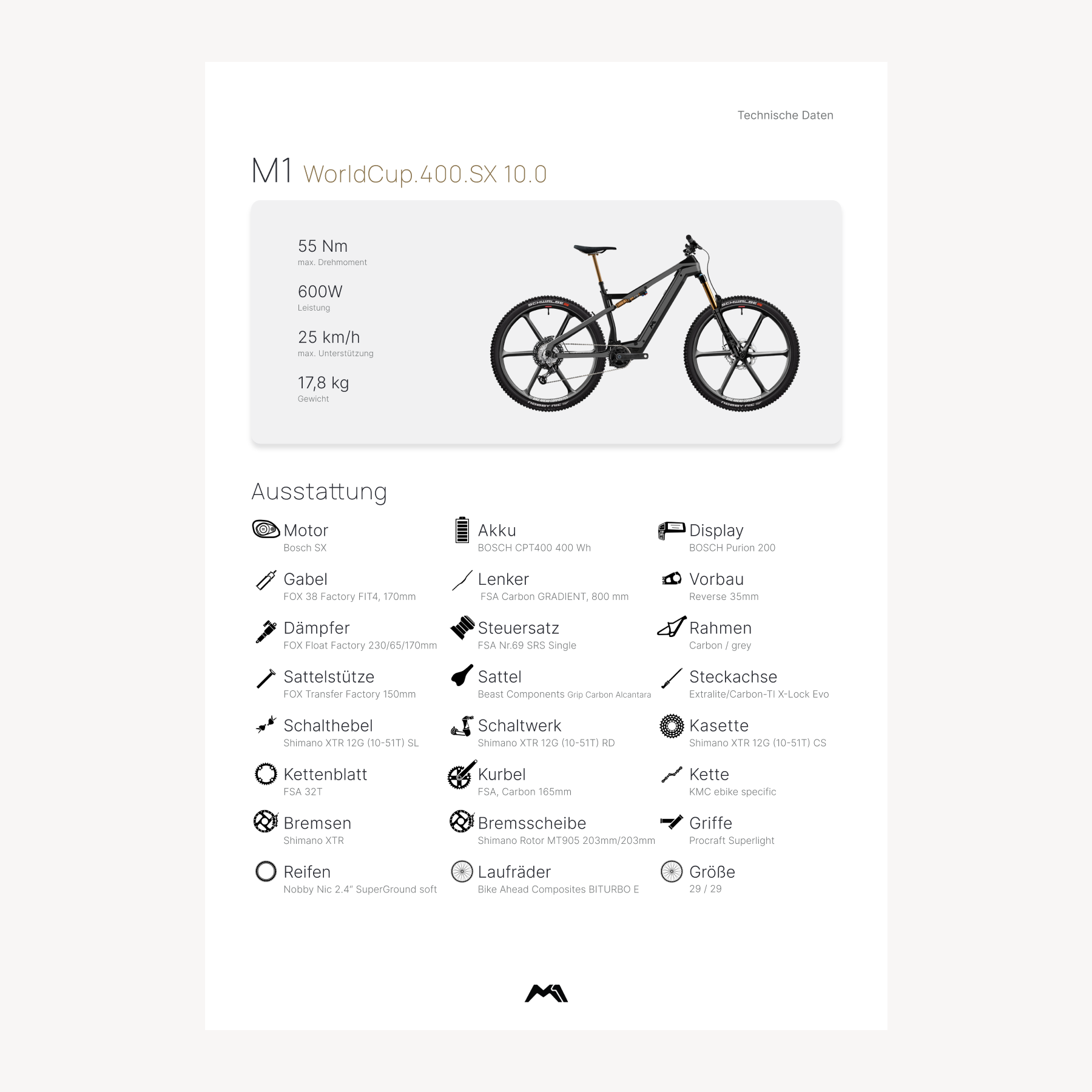 Allerbeste Komponenten und die perfekt ausbalancierte Geometrie im Up- und Downhill machen das M1 WorldCup zu deinen Traum-Highend-E-Bike. Mehr Abenteuer, mehr technologische Perfektion und mehr Fahrspaß gehen nicht. Durch den PowerMore 250 Range Extender von Bosch steht Ihrem Abenteuer nichts mehr im Weg.